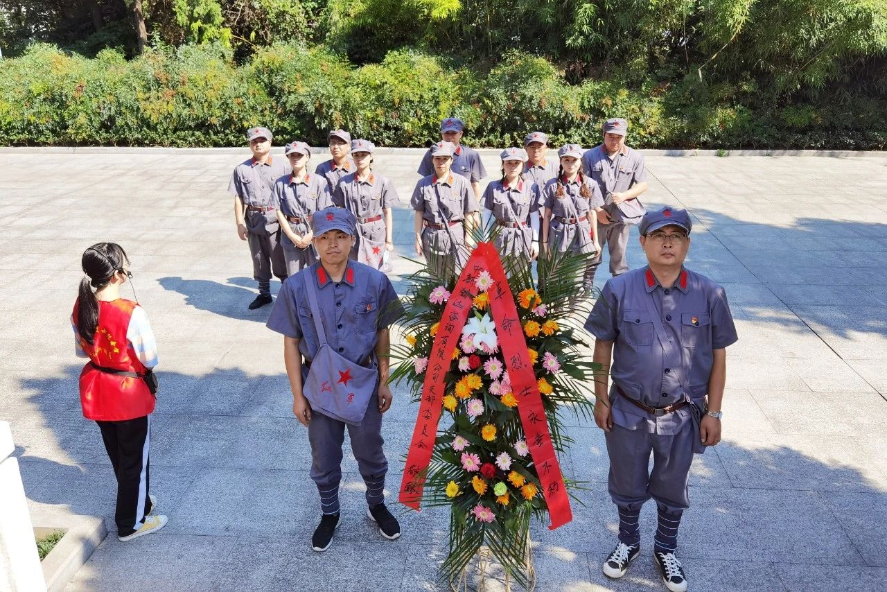 在鄂豫皖蘇區首府烈士陵園,園內松柏蒼翠,修竹亭立,幽靜典雅,景色宜人。在革命烈士紀念碑前全體人員向革命先烈默哀并敬獻花籃,深深三鞠躬表達對革命先烈的無限敬仰和懷念之情。