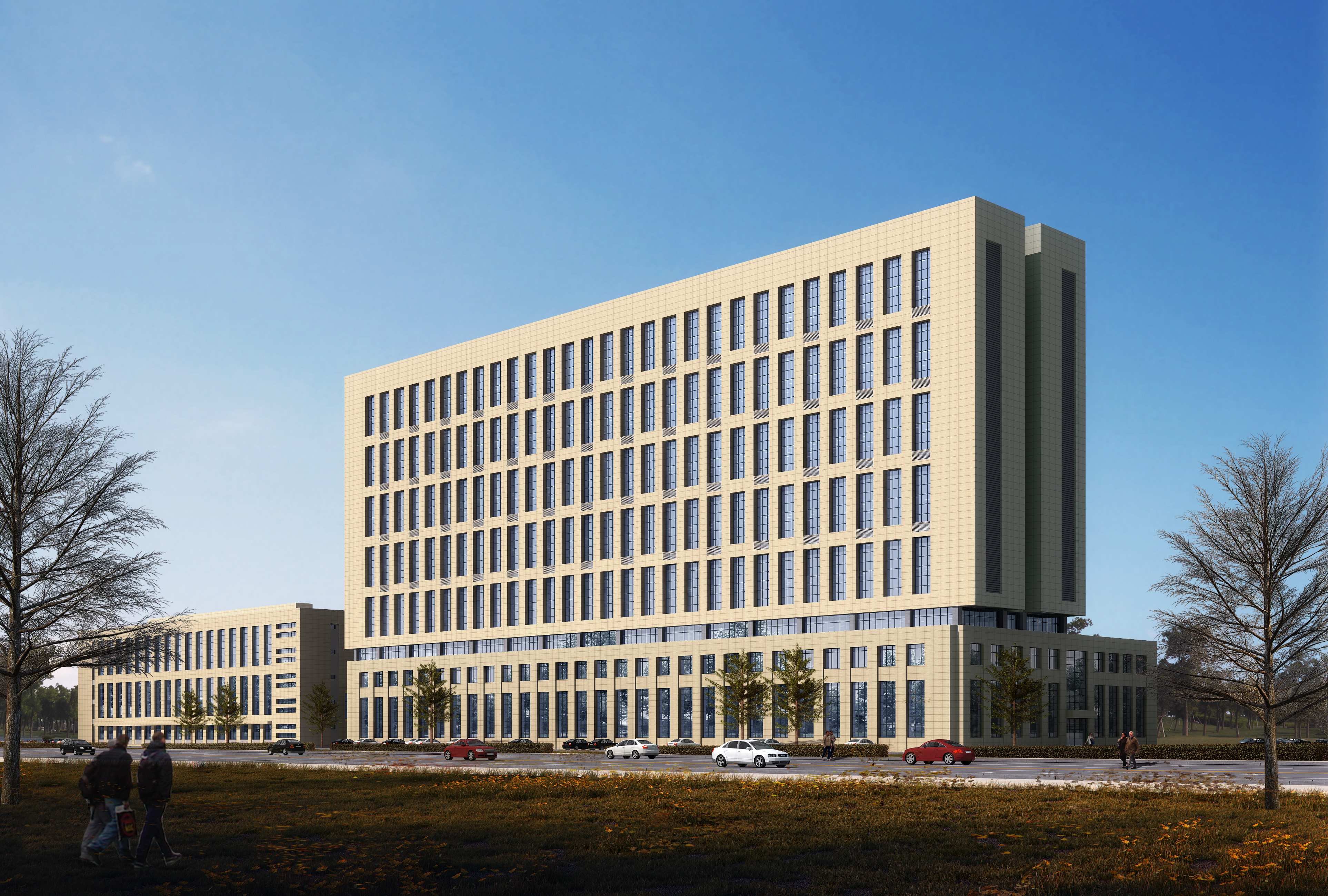 該項目總建筑面積72516平方米,分為實驗中心和實訓中心兩個建筑單體,其中實驗中心采用框架剪力墻結構,地上14層,地下1層,建筑高度為59.7米,建筑面積53796平方米;實訓中心采用鋼筋混凝土框架結構,地上五層,建筑高度為23.1米,建筑面積18720平方米。