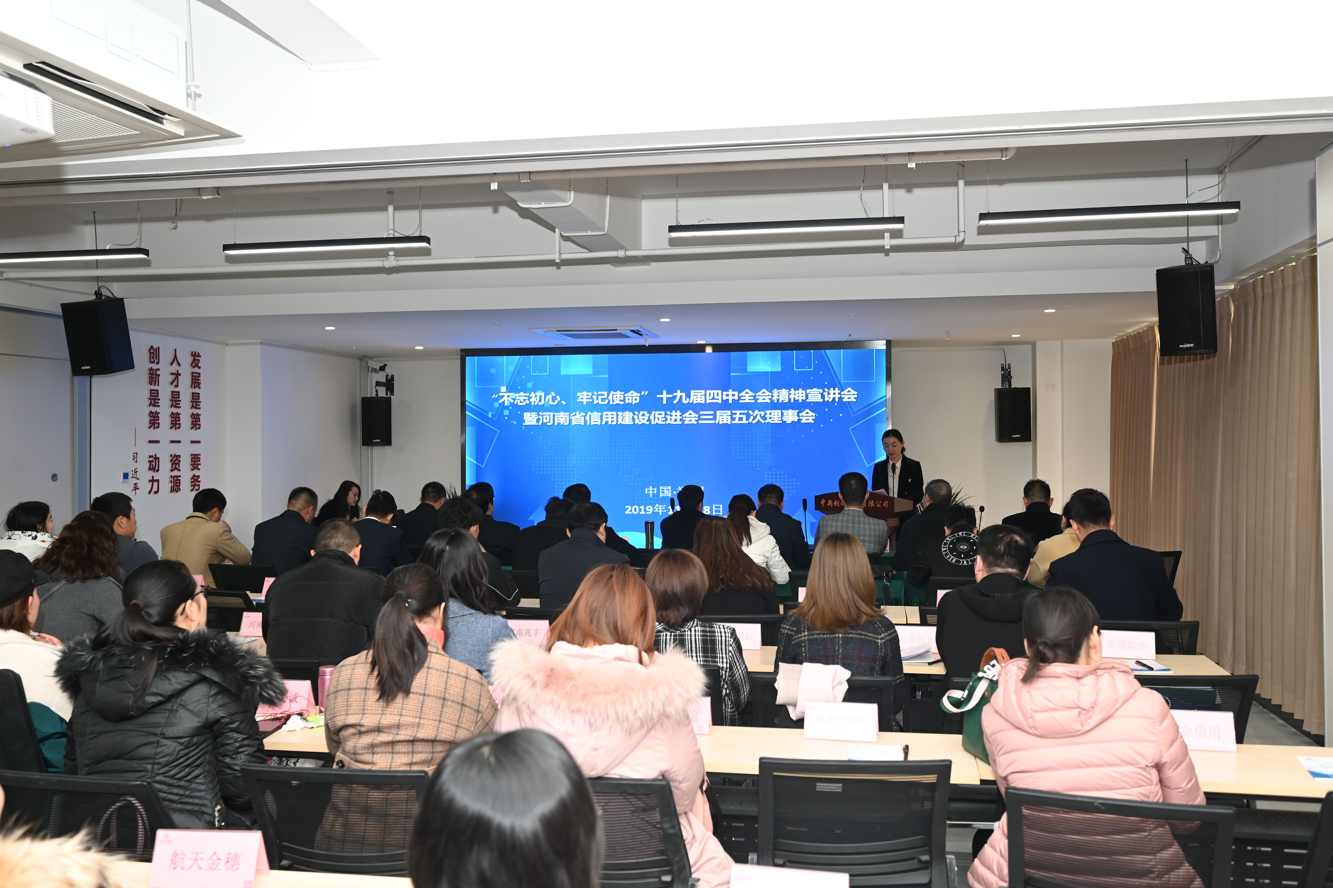 2019年11月28日,“不忘初心、牢記使命”十九屆四中全會(huì)精神宣講會(huì)暨河南省信用建設(shè)促進(jìn)會(huì)三屆五次理事會(huì)在中新創(chuàng)達(dá)咨詢有限公司順利召開。公司董事長(zhǎng)楊明宇當(dāng)選河南省信用建設(shè)促進(jìn)會(huì)會(huì)長(zhǎng)。