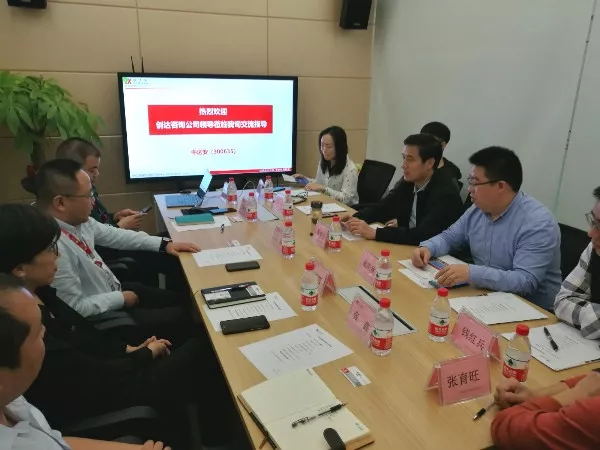 12月18日下午,董事長楊明宇帶領廣東區域各負責人一行到中達安股份有限公司開展座談交流。中達安股份有限公司總裁王勝及各部門負責人熱情接待并出席座談會。