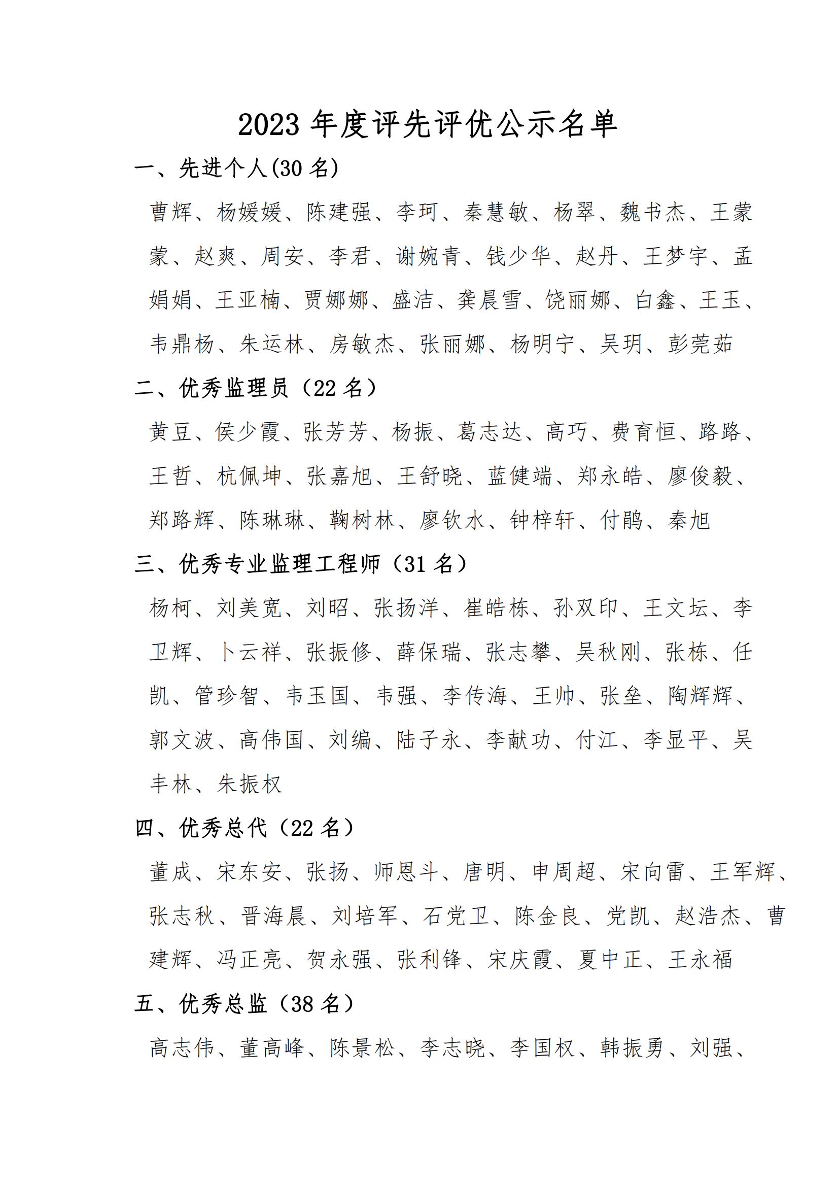 關于2023年度評先評優評審結果的公示